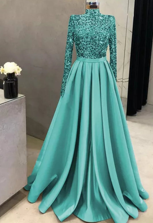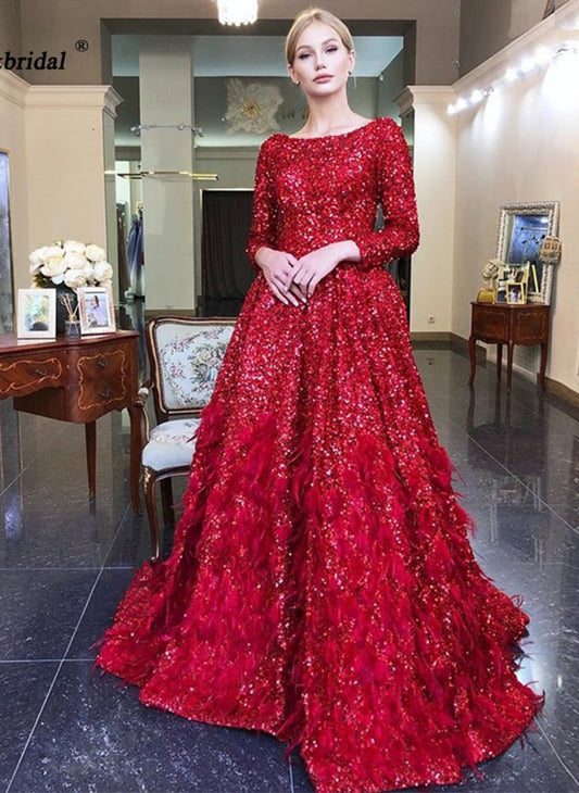 Leanah Luxury Feather Sequin Gown-Ruby Red