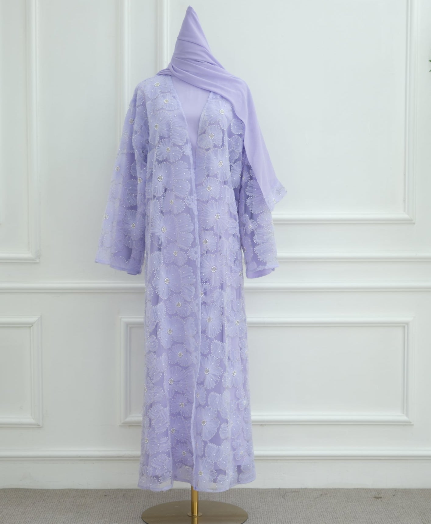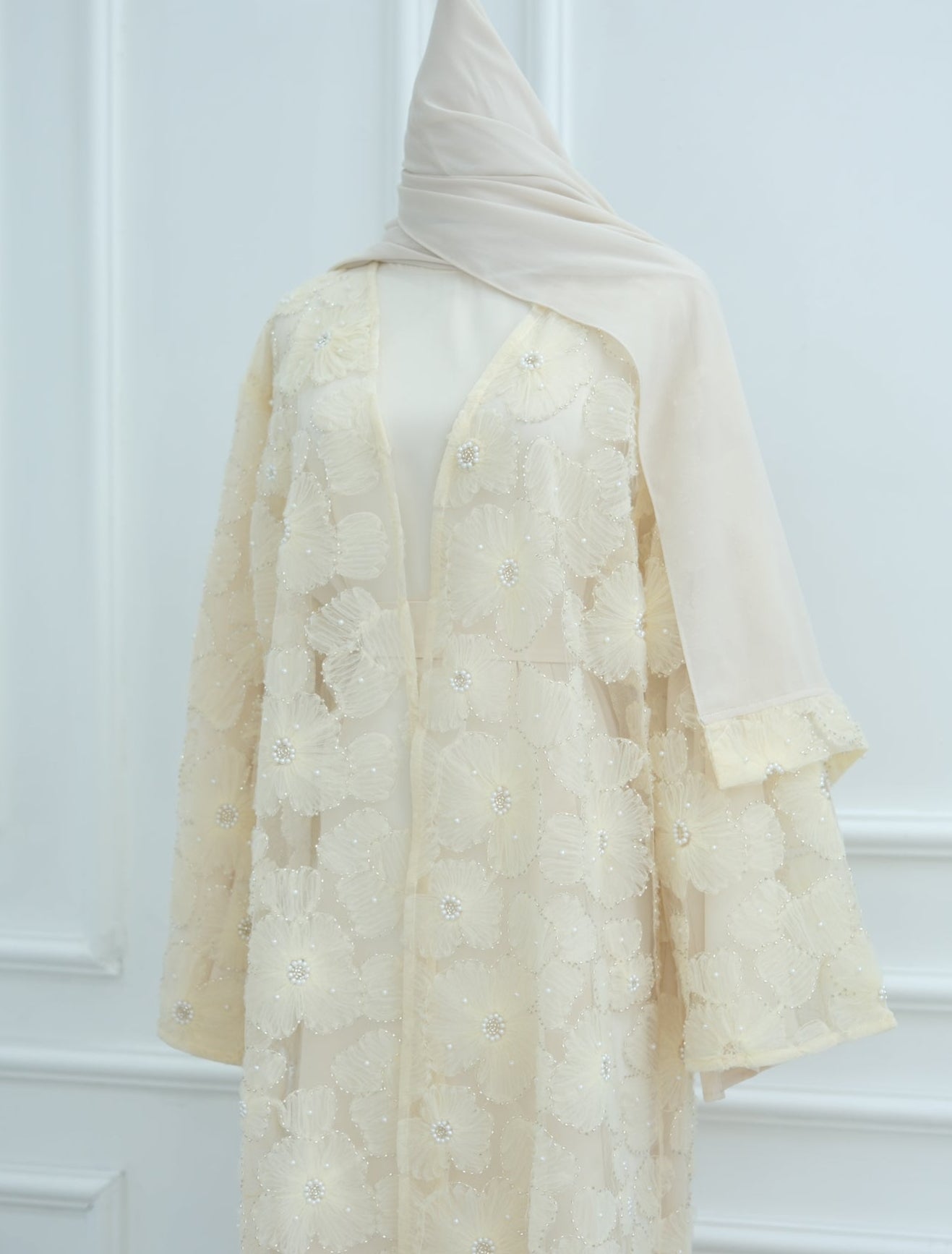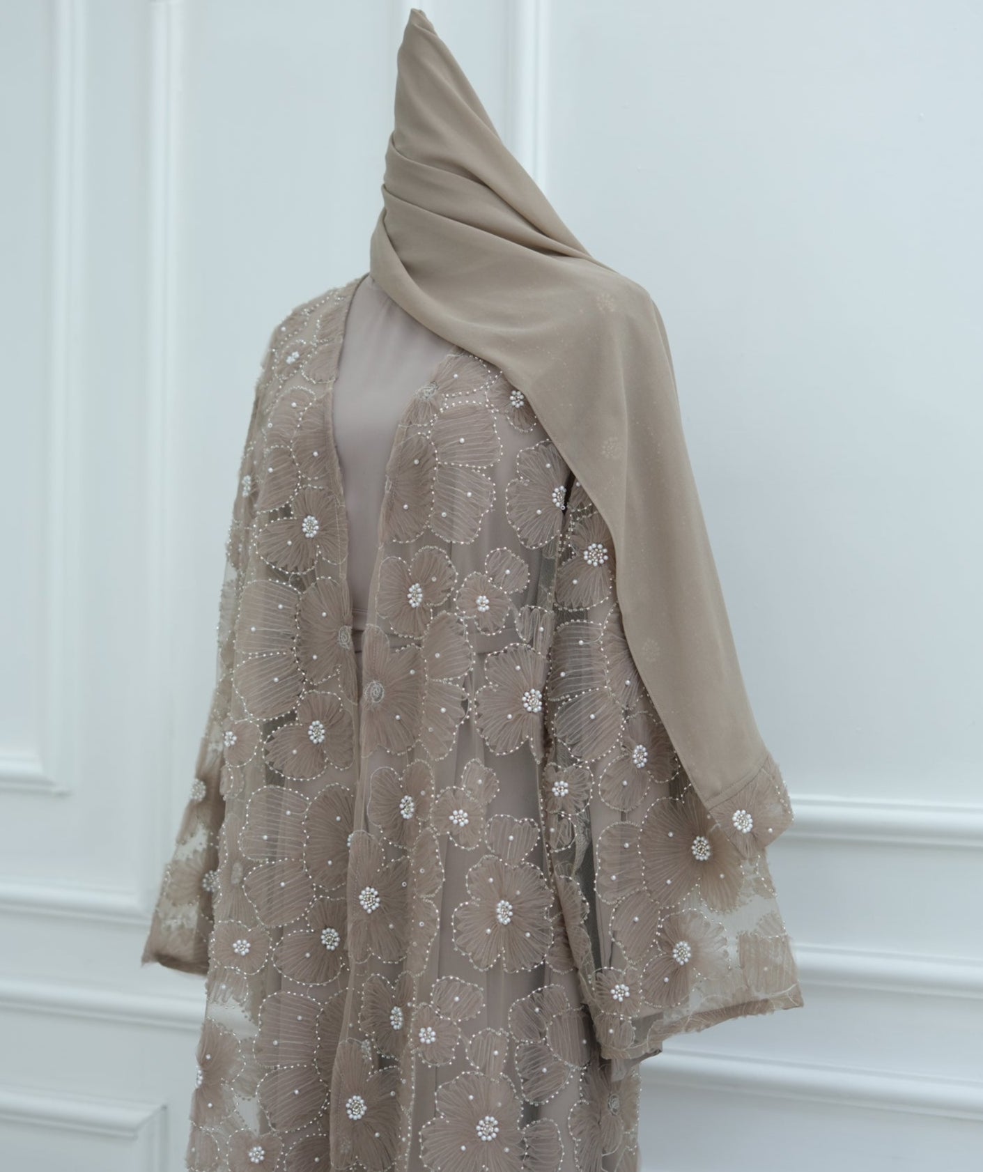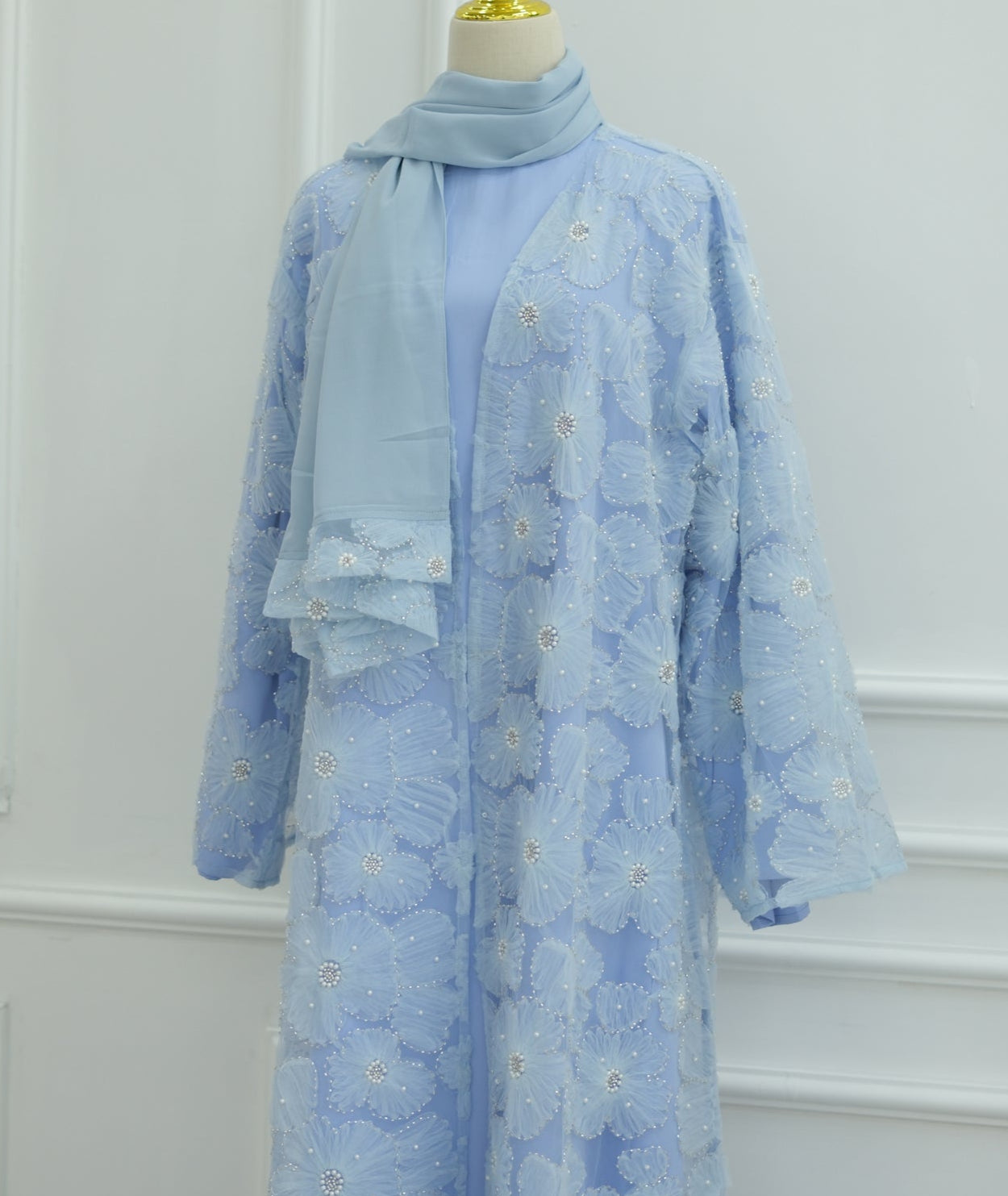 Graceful and timeless, our Nawra abaya set is designed for the modern muslimah who values both modesty and elegance. This two-piece set features: