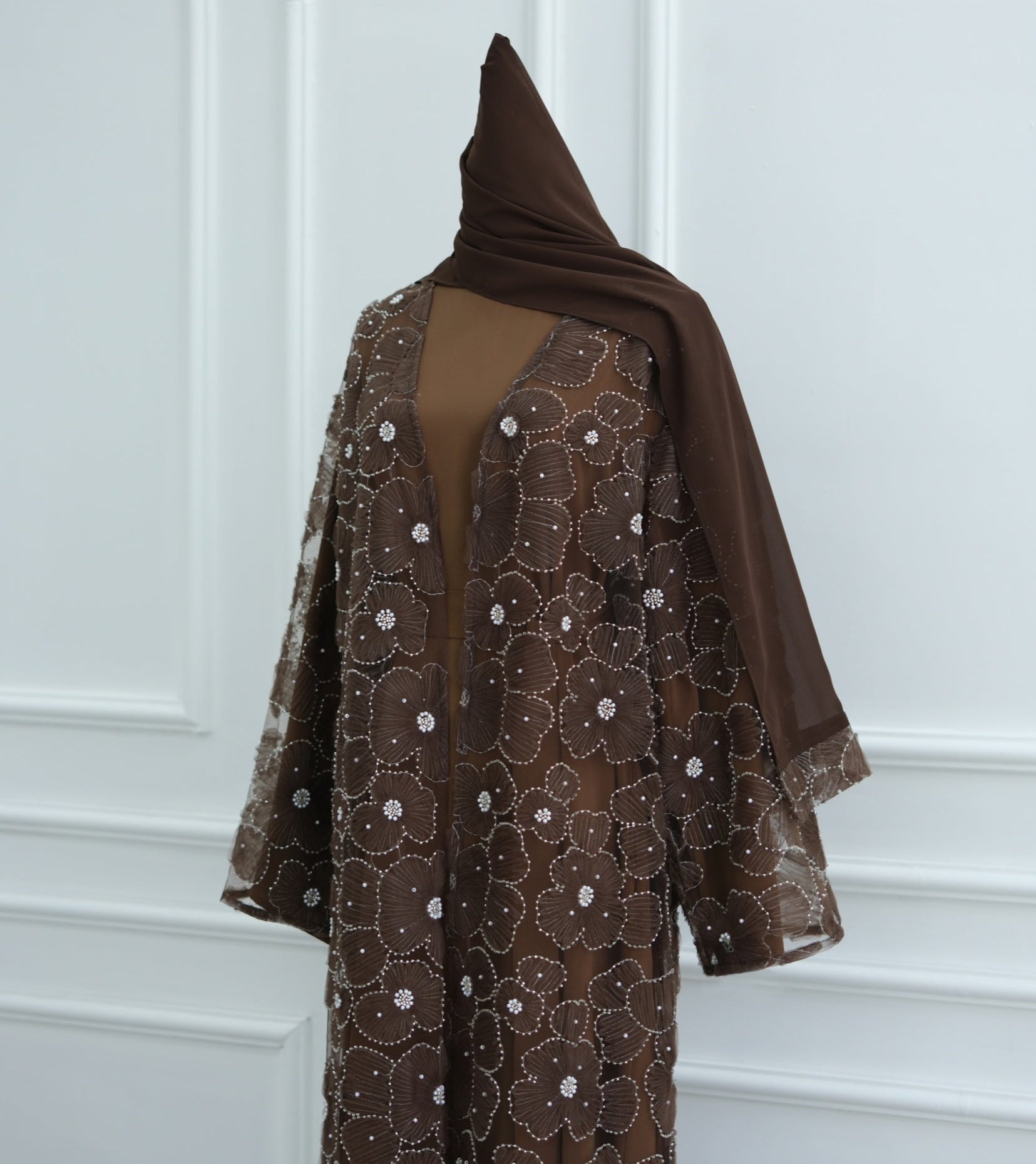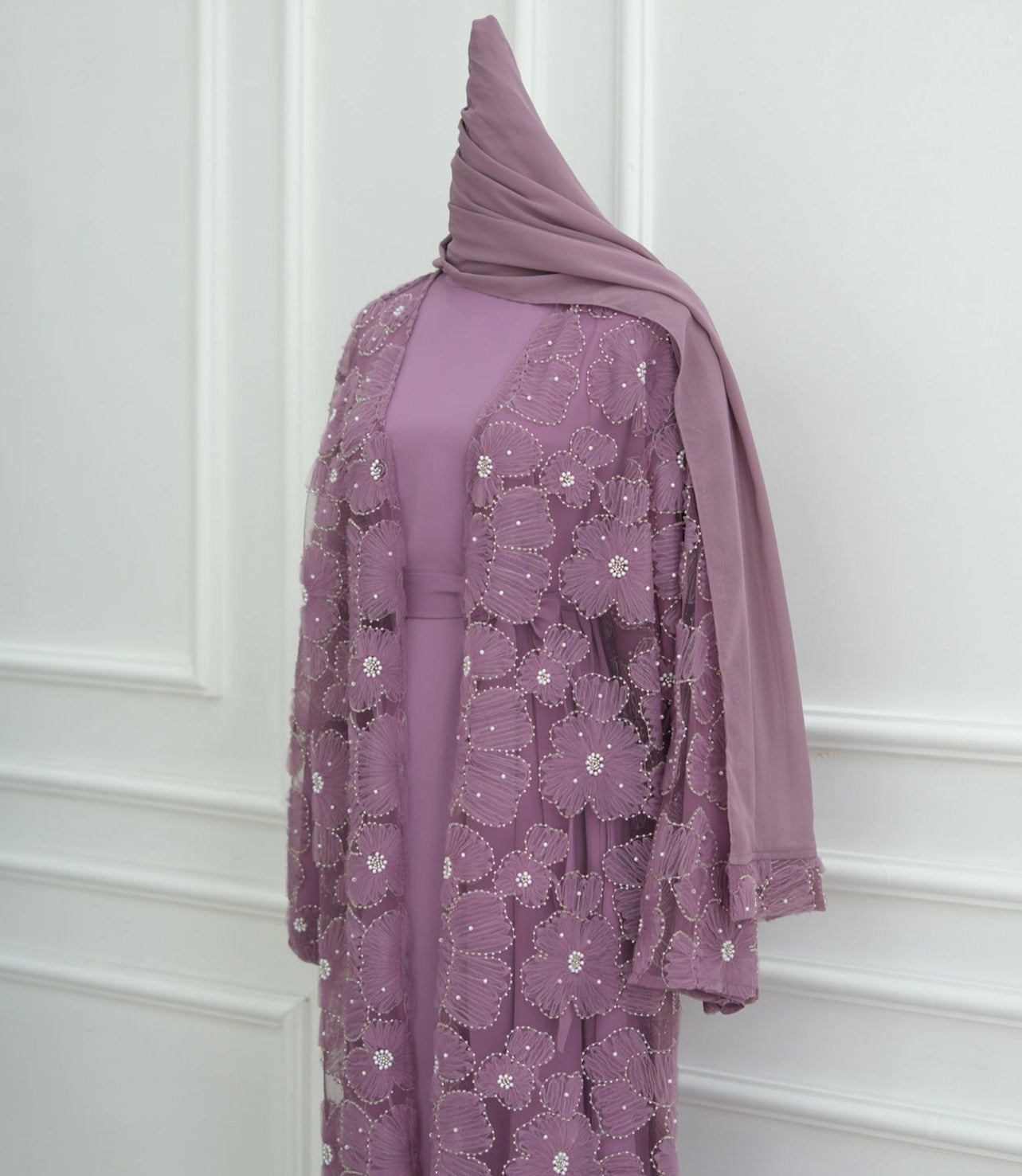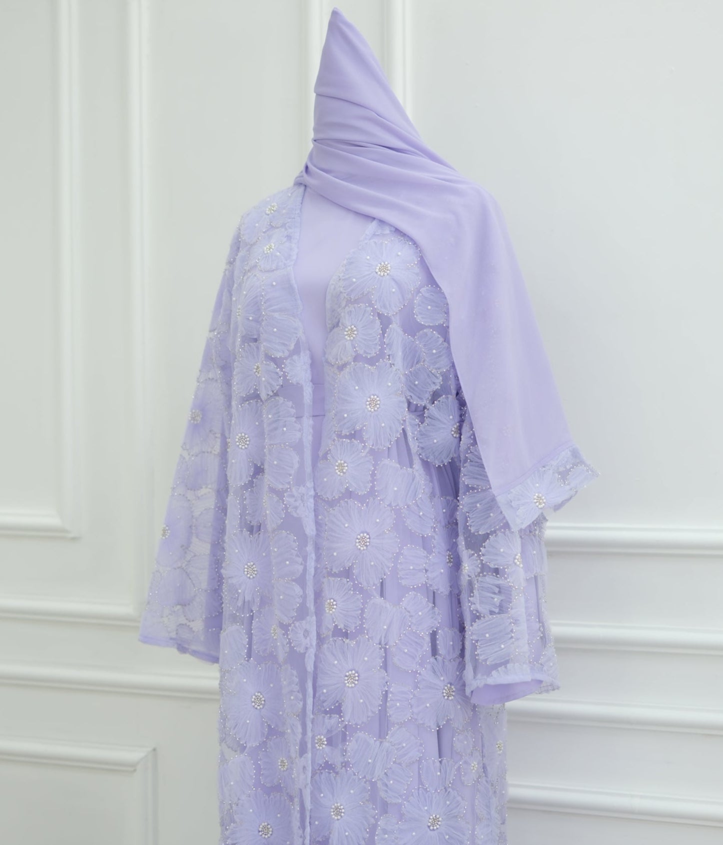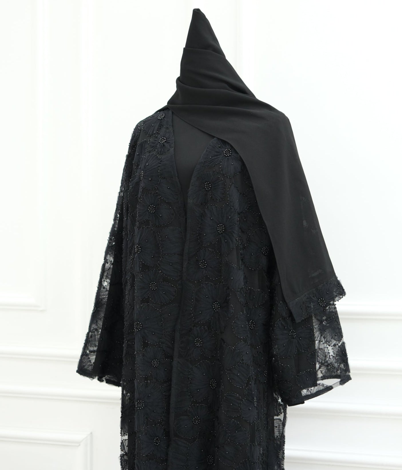 Graceful and timeless, our Nawra abaya set is designed for the modern muslimah who values both modesty and elegance. This two-piece set features: