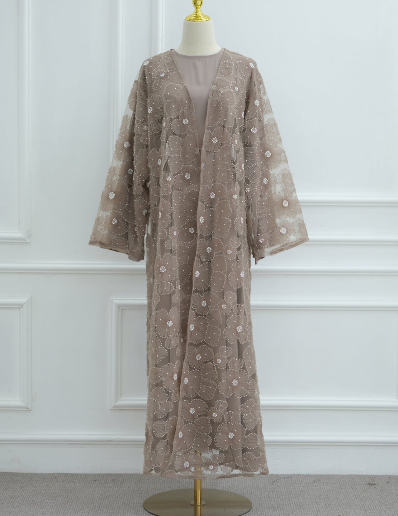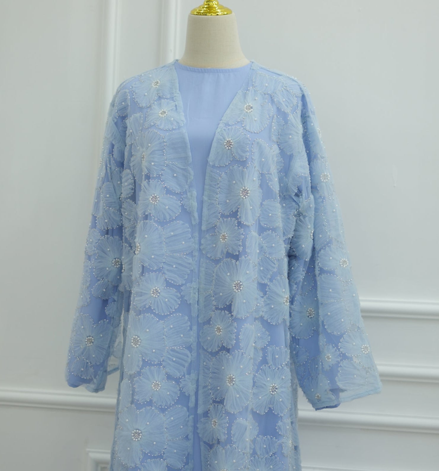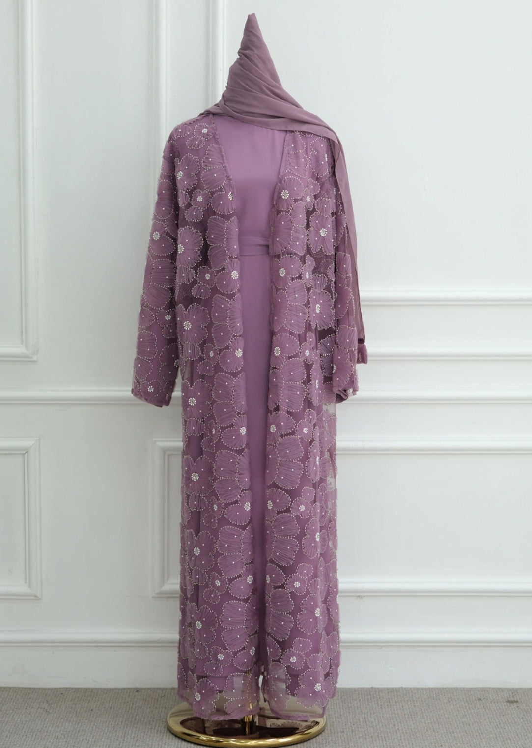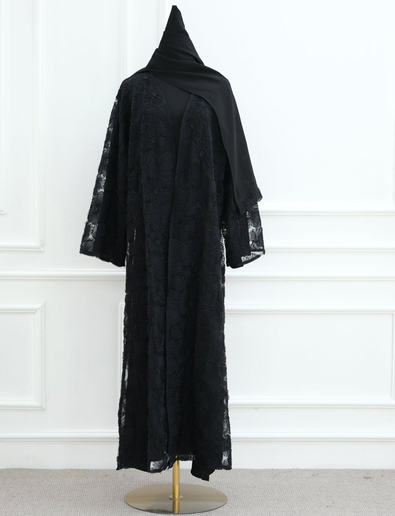 Graceful and timeless, our Nawra abaya set is designed for the modern muslimah who values both modesty and elegance. This two-piece set features: