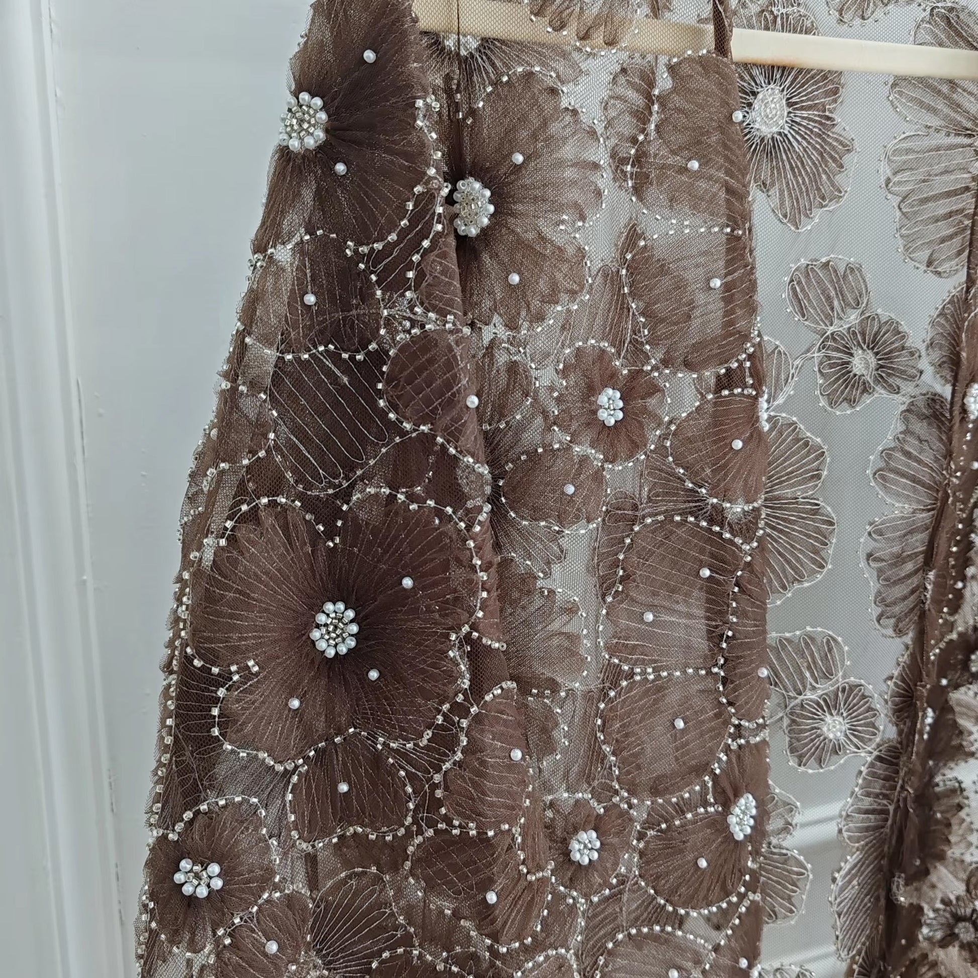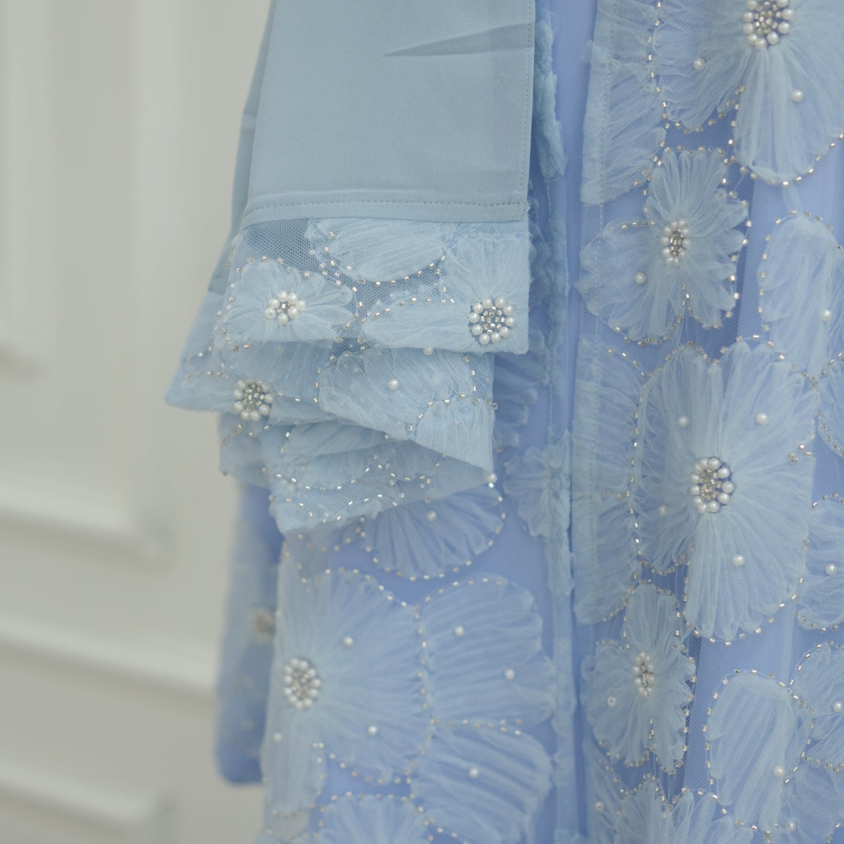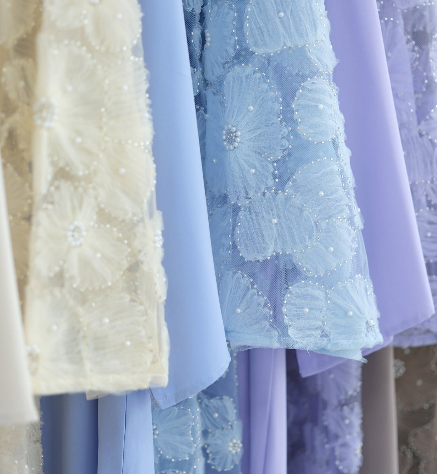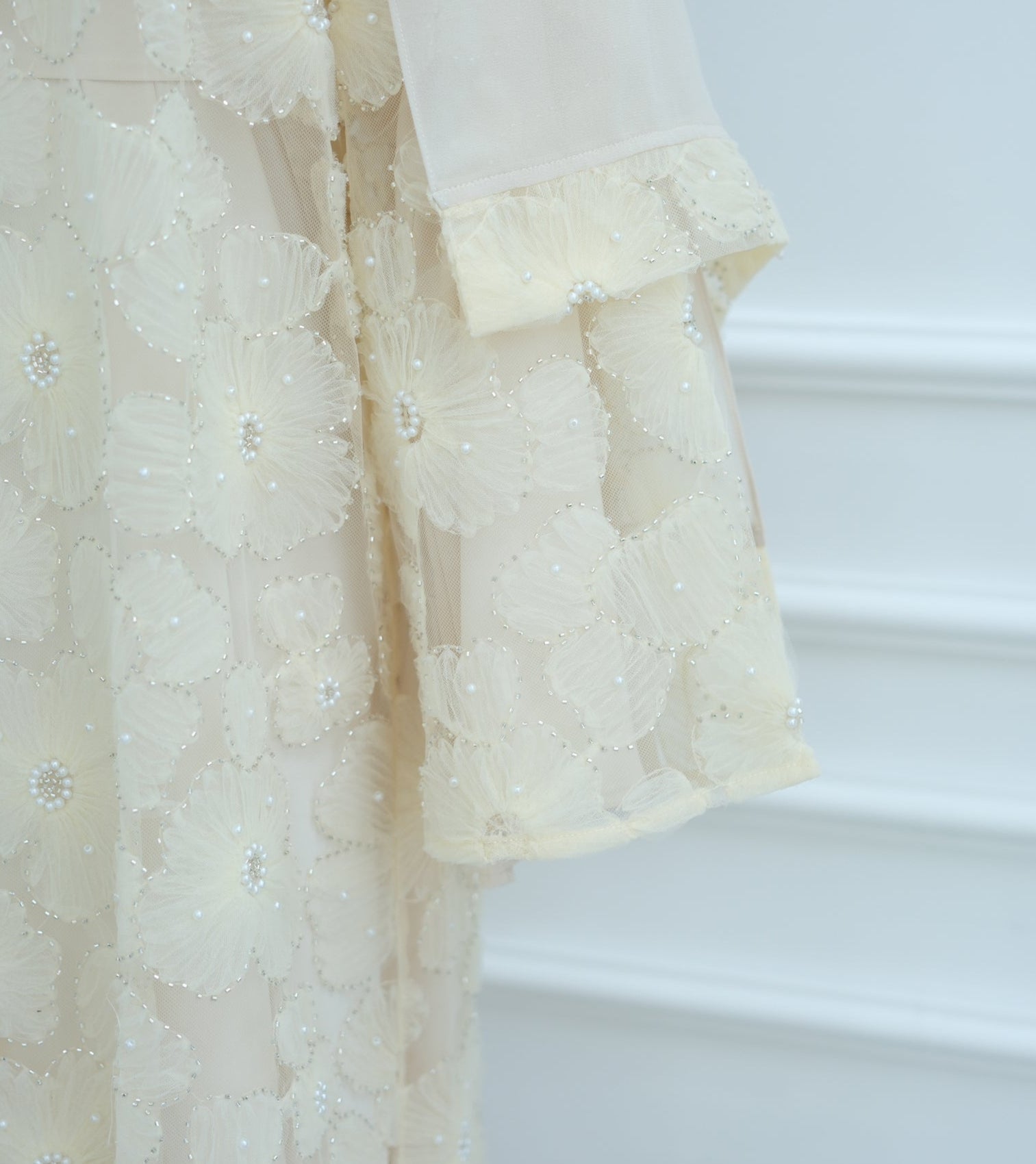 -A delicate lace overlay with intricate floral embroidery, adding a touch of sophistication and charm.