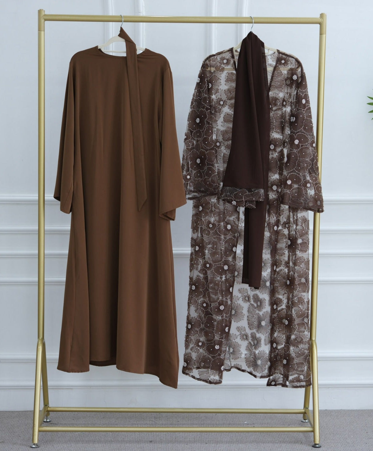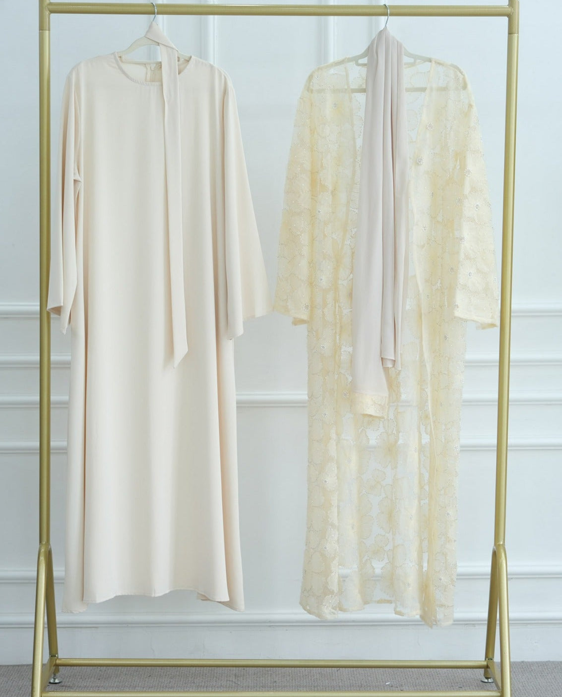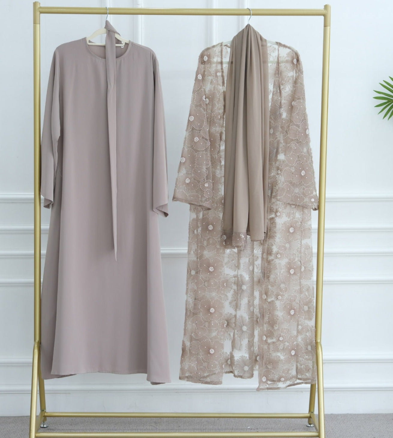 Perfect for Eid, weddings, or special gatherings, this set beautifully combines simplicity with refinement, making it a must-have addition to your modest wardrobe.