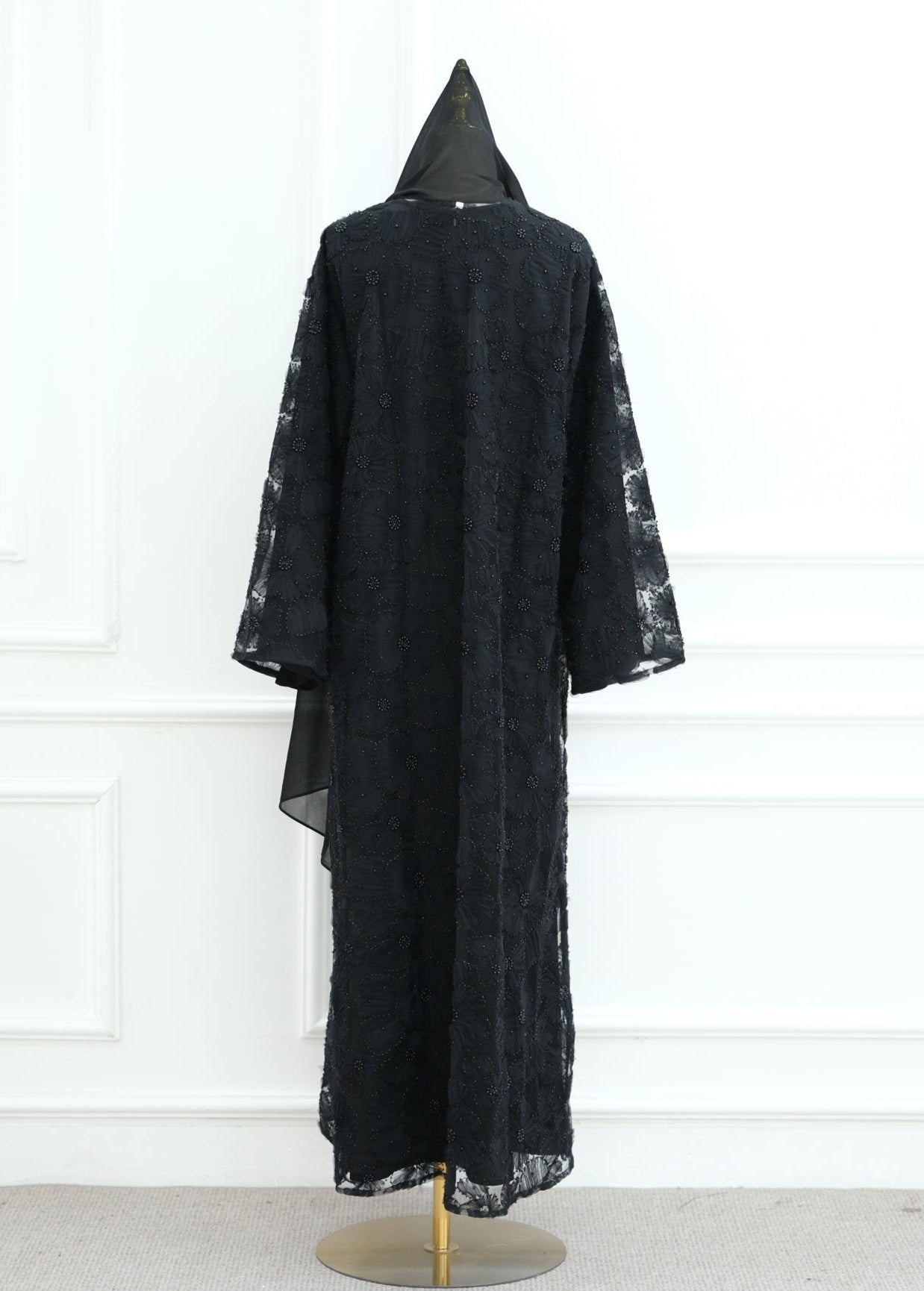 This abaya has a loose fit therefore, please check the size chart for accurate measurements. Please allow a variation of 1-2 inches due to manual. Product colour may slightly vary due to photographic lighting source.