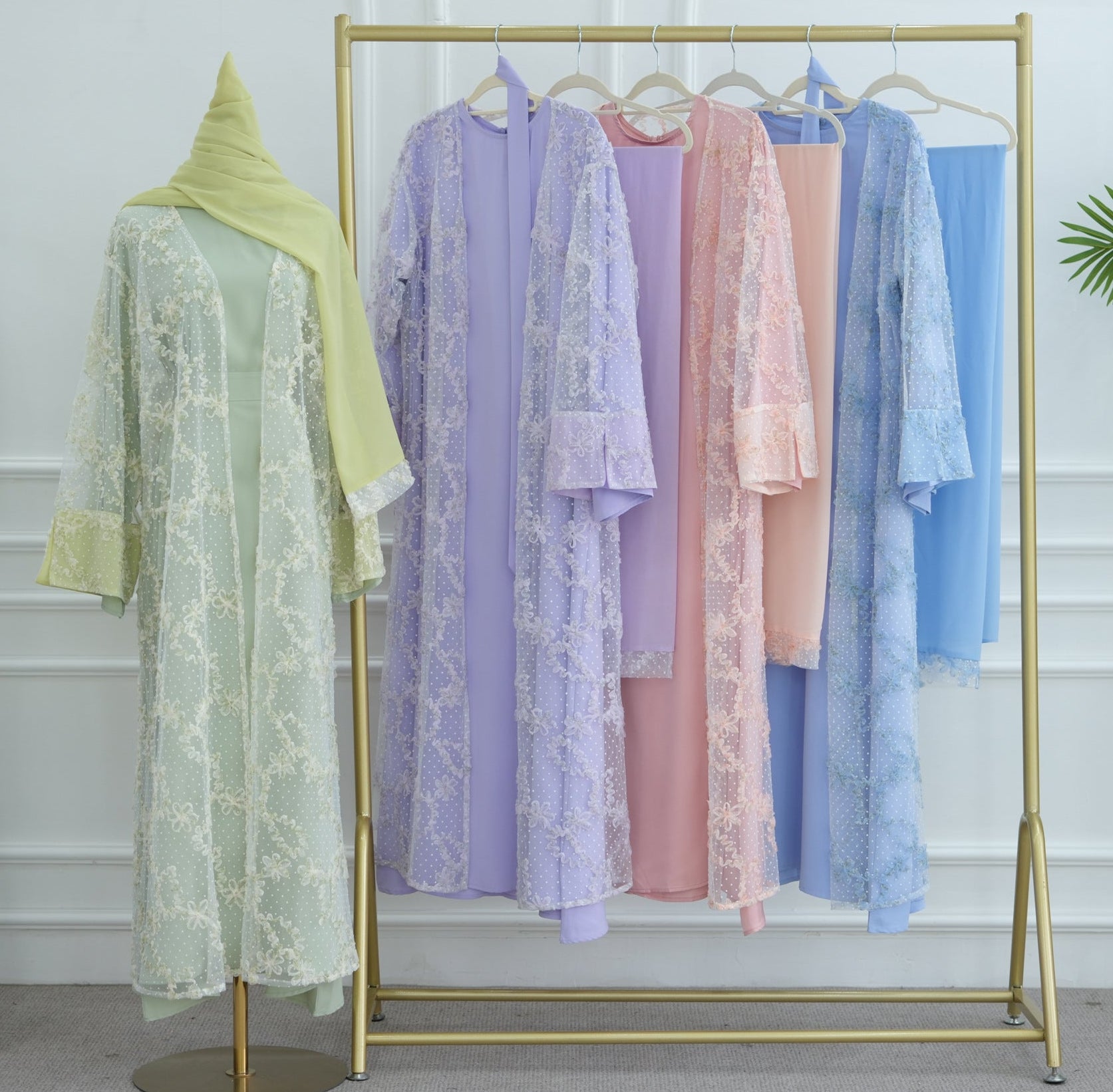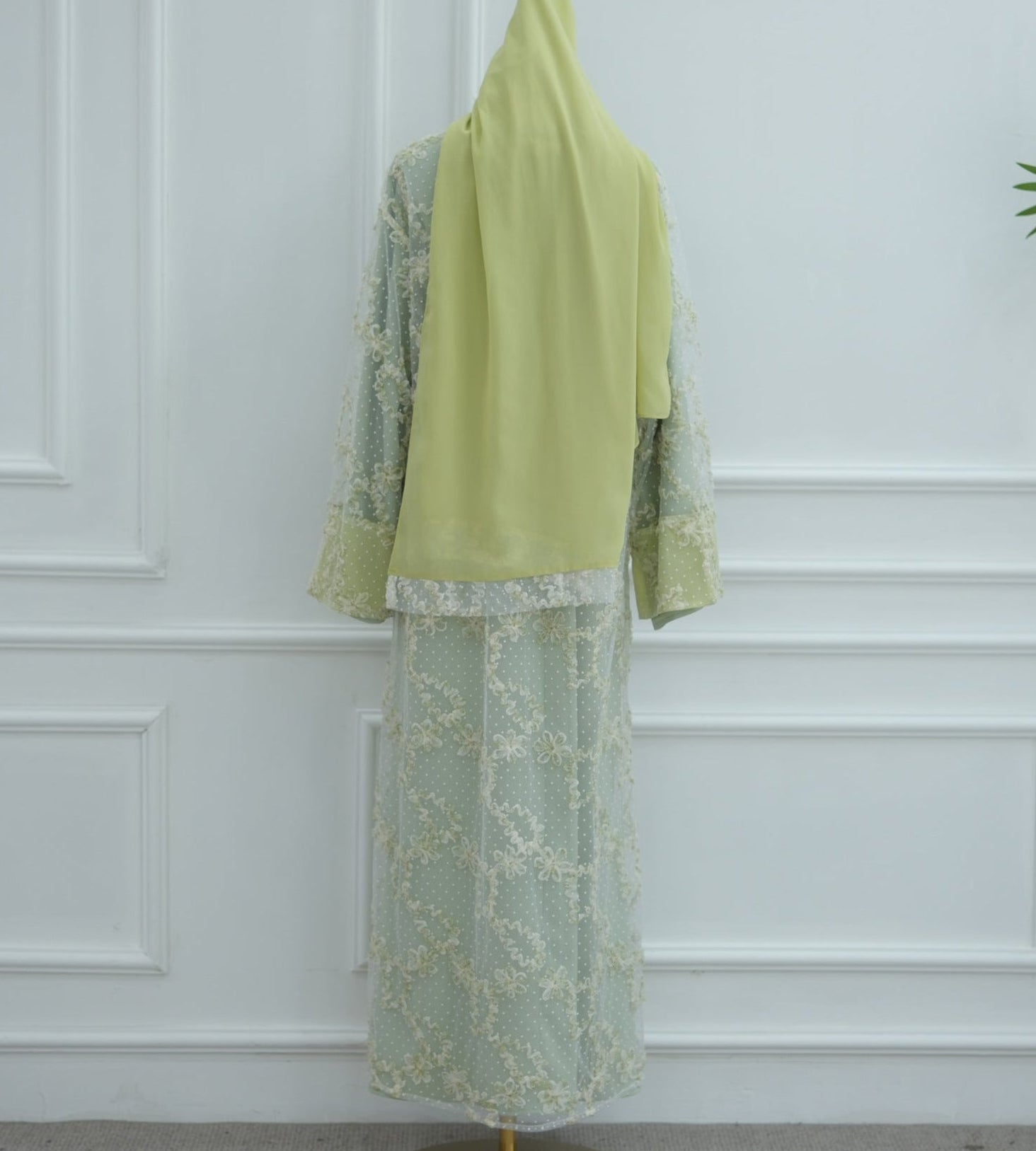 -A matching chiffon hijab to complete the coordinated look.